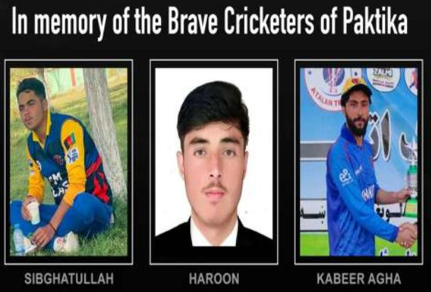 L'Afghanistan Cricket Board ha identificato Kabeer, Sibghatullah, and Haroon come i tre giocatori rimasti uccisi assieme ad altre cinque persone con sette feriti gravi. "I giocatori si erano precedentemente recati a Sharana, capoluogo della provincia di Paktika, per partecipare a una partita amichevole di cricket. Dopo essere tornati a casa a Urgun, sono stati colpiti" si legge nel comunicato. Come gesto di rispetto per le vittime, l'Afghanistan Cricket Board ha deciso di ritirarsi dalla partecipazione alla prossima Tri-Nation T20I Series alla quale parteciperà anche il Pakistan (oltre allo Sri Lanka), in programma per la fine di novembre a Lahore e Rawalpindi".