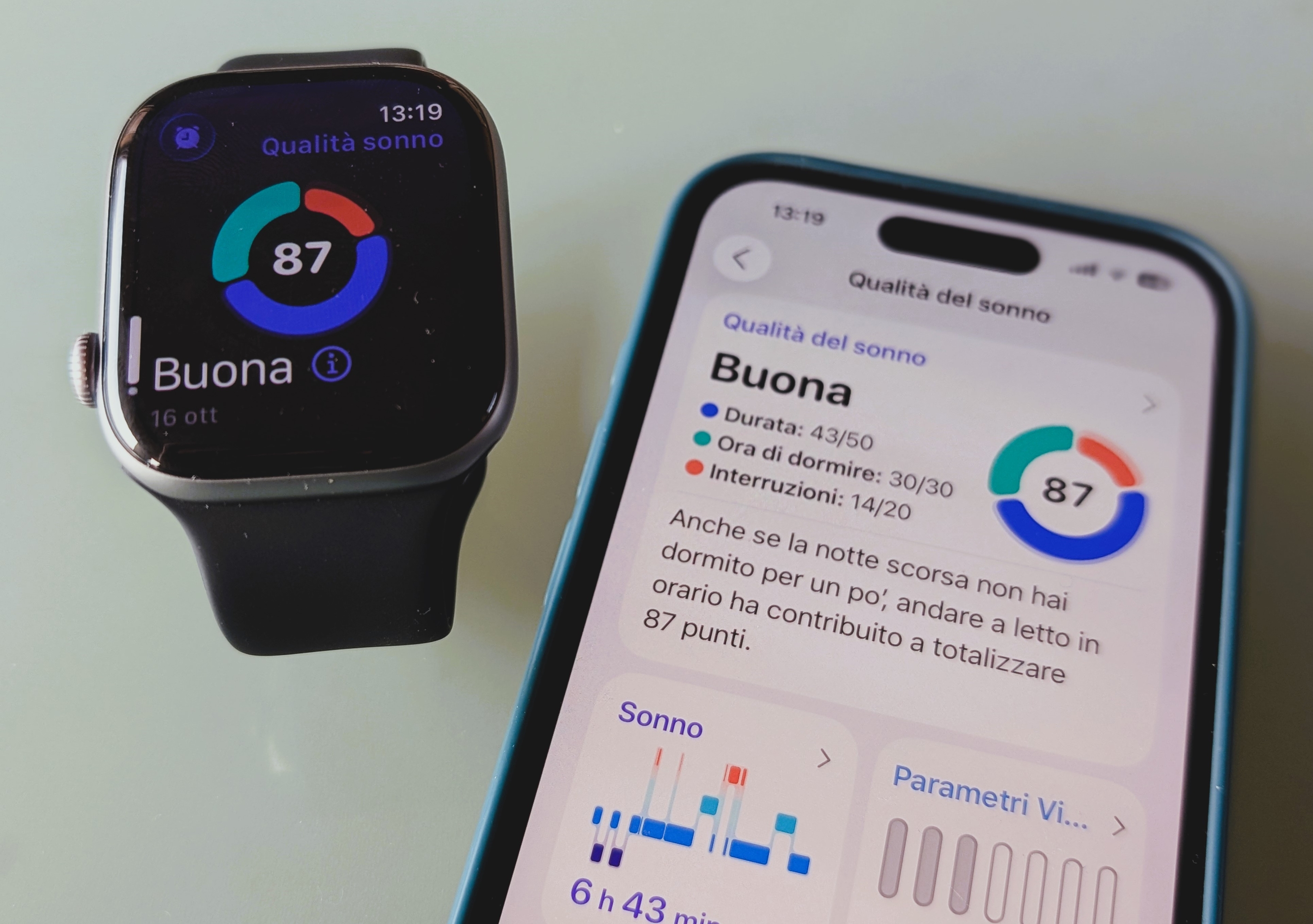 Un’utile novità, come si accennava, c’è anche nell’analisi della qualità del sonno. A molti tenere al polso lo smartwatch nelle ore notturne dà fastidio (e siamo tra essi), ma detto questo, la funzione Sleep Score adesso rende la cosa semplicissima: assomma alcuni dati - la durata del sonno, l’ora in cui si va a dormire, interruzioni e risvegli notturni - e assegna un punteggio. Più alto è, migliore è stato il riposo. Cercare di avvicinarsi a 100 e quindi imporsi una routine, sarebbe la scelta sensata. Noi, al momento, non ci siamo riusciti.