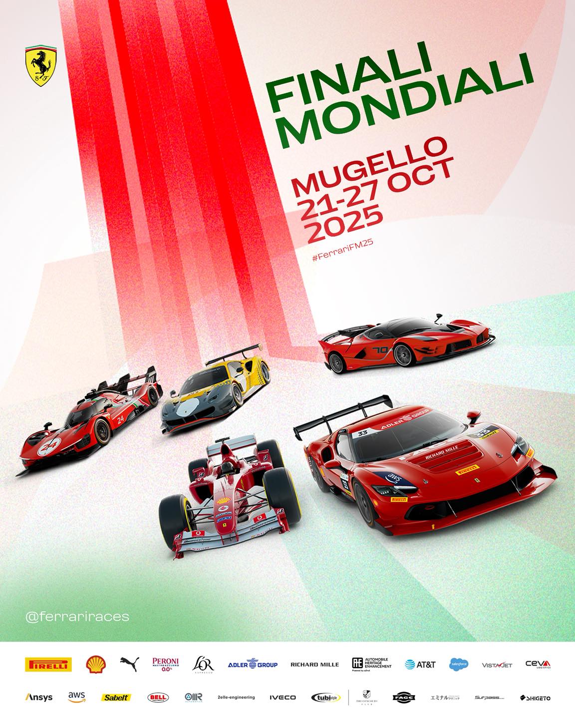 Sarà una settimana quanto mai intensa all'Autodromo del Mugello. Protagoniste le Finali Mondiali Ferrari, da martedì 21 a domenica 26 ottobre con un fitto programma. Numerose le iniziative nel segno della passione per il Cavallino Rampante, a celebrazione della conclusione delle attività di Corse Clienti 2025.