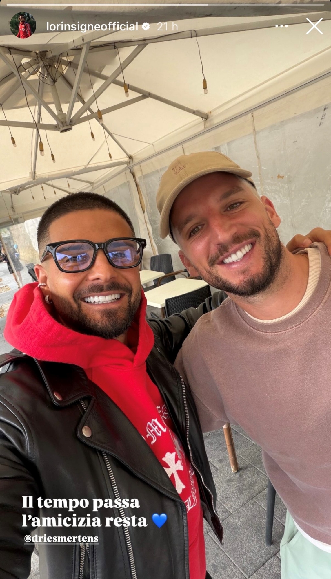 “Il tempo passa, l’amicizia resta”. Lorenzo Insigne posta nelle storie di Instagram un selfie insieme al compagno di reparto ai tempi del Napoli. Rieccoli, Insigne e Mertens di nuovo insieme: rilassati e sorridenti, si sono incontrati per sorseggiare un caffè vista mare nello storico bar di Posillipo, a via Petrarca. I due attaccanti ex Napoli si sono concessi ad autografi e foto con i passanti. Perché se è vero che i due scudetti dell’era De Laurentiis sono arrivati dopo il loro addio, è pur vero che entrambi hanno fatto battere il cuore ai tifosi azzurri per un decennio insieme.