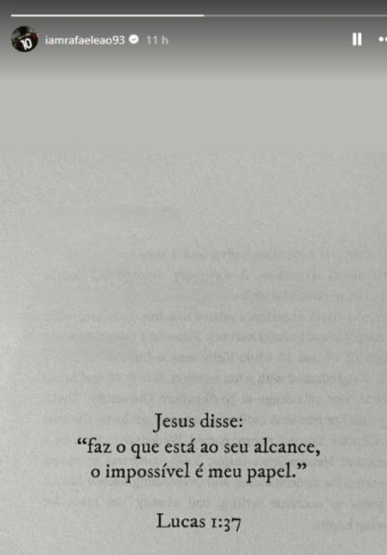 La coda velenosa di Lazio-Milan, che non si è fatta mancare nulla tra risultato sul campo e problematiche interne allo spogliatoio, trova sfogo anche sui social. A cui, come fa spesso, si è rivolto Rafa Leao dopo le polemiche piuttosto rilevanti che l'hanno visto coinvolto all'Olimpico. Il 10 rossonero nelle scorse ore ha postato una storia su Instagram in cui ha scritto una frase - in portoghese - che Rafa cita dal Vangelo di Luca (1:37) e attribuisce a Gesù: "Fai ciò che è in tuo potere. L'impossibile è compito mio".