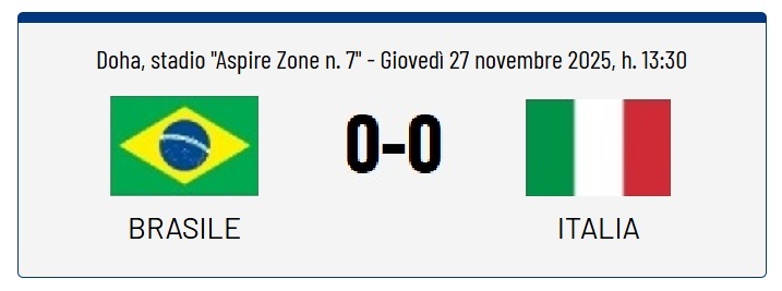 Italia e Brasile si affrontano a Doha nella gara valida per la finale del 3° posto del campionato mondiale under 17
