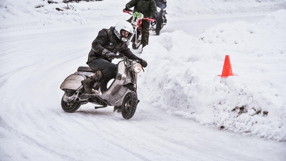 A proposito di appuntamenti non sempre garantiti, la storia del divertimento su ghiaccio in stile Swank è emblematica. In Valsesia, già nel 2017 lo Snow Quake all’Ice Rosa Ring aveva portato decine di moto chiodate in un contesto dove la classifica era quasi un pretesto e il divertimento il vero obiettivo. Il format “Swank Rally On Ice” è approdata nel 2024 sulle alpi francesi a Chamrousse, su un circuito del ghiaccio dedicato. Un altro appuntamento di grande successo era la Pragelato 2T, che per diversi anni ha richiamato centinaia di appassionati vespisti che si sono sfidati sulla pista nella zona di Sestriere.